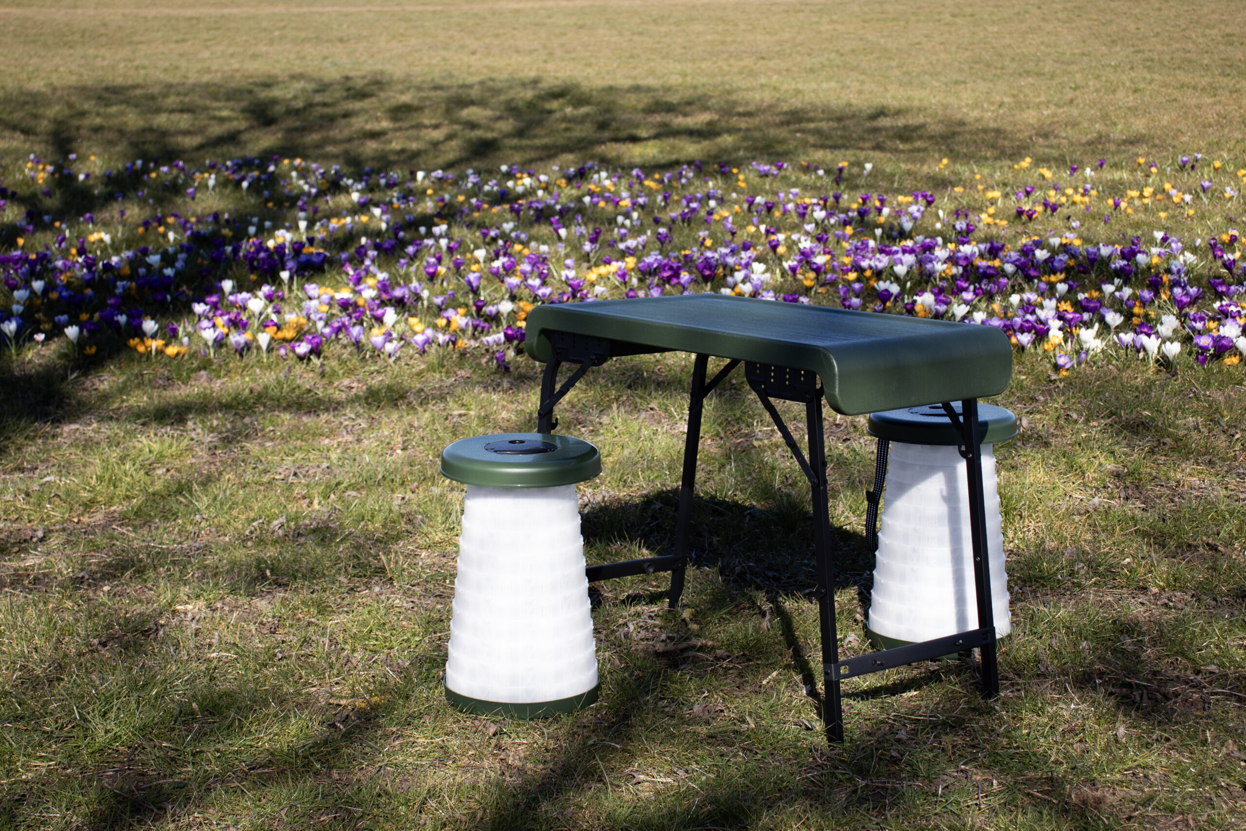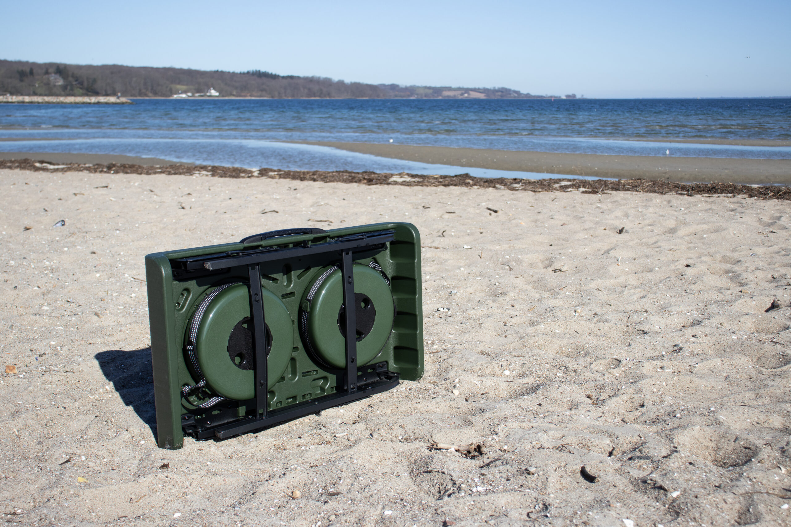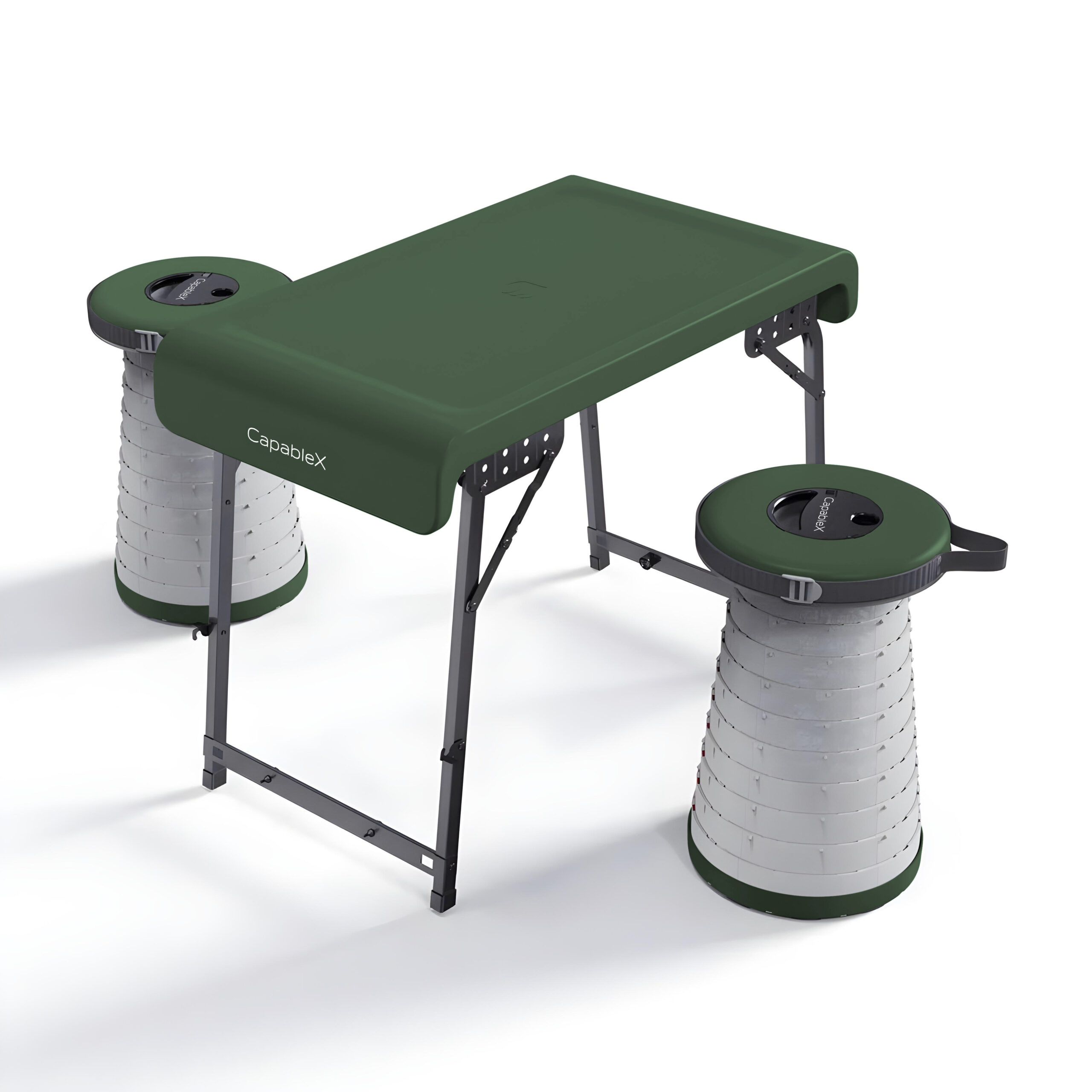 Dette smarte camping- og udendørssæt kombinerer siddekomfort og funktionalitet i ét. Sættet består af et bord og to skamler – perfekt til alt fra picnic og fisketure til campingpladsen eller baghaven.