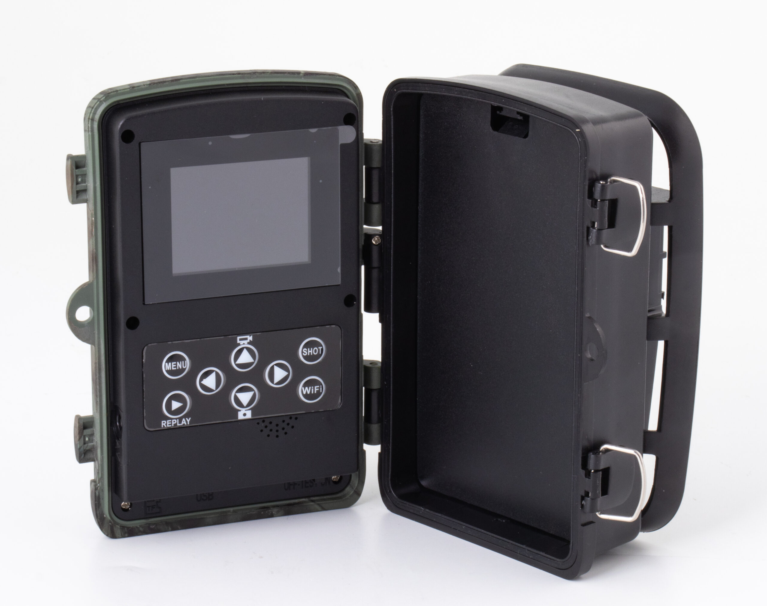 Overvåg din ejendom eller hold øje med dyrelivet om natten med dette vildtkamera. 8 MP-sensoren sikrer billeder og Full HD-videoer med høj kvalitet, som kan ses på den indbyggede skærm. Kameraet har en wi-fi-forbindelse, så du ligeledes kan se videoer og billeder via en app fra din sofa. Optagelser kan gemmes på et MicroSD-kort på op til 64 GB (ikke inkluderet). De 3 bevægelsessensorer er altid i drift, så det kan fange ting i bevægelse på 0,3 sekunder – også om natten. IR-filteret med sensordistance på 1 – 25 meter og 42 LED-lys sikrer perfekt timede og godt oplyste optagelser. Kameraet er IP65 vandtæt, så selv kraftig regn er intet problem. Det kører på 8x AA-batterier (ikke inkluderet), hvilket sikrer en drift på op til 3 måneder. Det kan nemt monteres med stropper på et træ eller en stang.