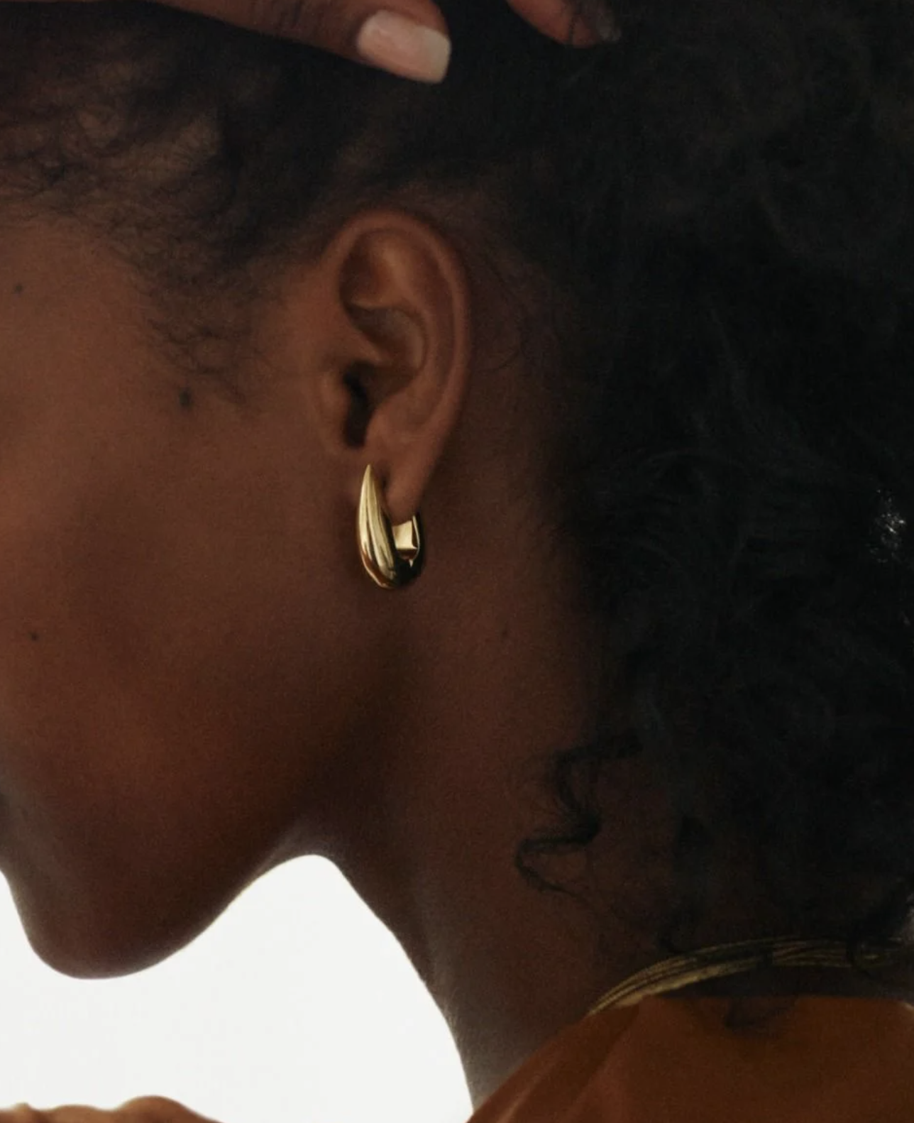 Edblad Crest Hoops L er designet til at sidde højt på øret med deres spidse afslutning og smalle dråbeform. Crest hoops L er meget fine, bær dem både til hverdag og fest.