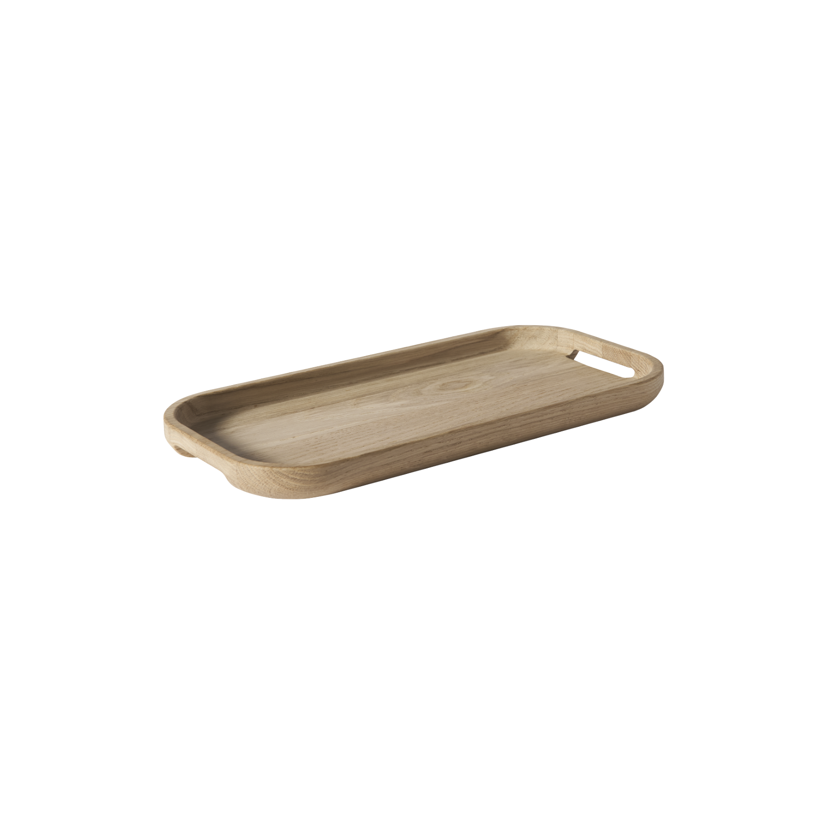 Elegant og funktionel serveringsbakke i FSC®-certificeret røget ask og natur eg, designet med smukke organiske former og afrundede detaljer. Flection-bakken kombinerer skandinavisk æstetik med praktisk anvendelighed og har grebhuller i begge ender, der gør den let at håndtere.