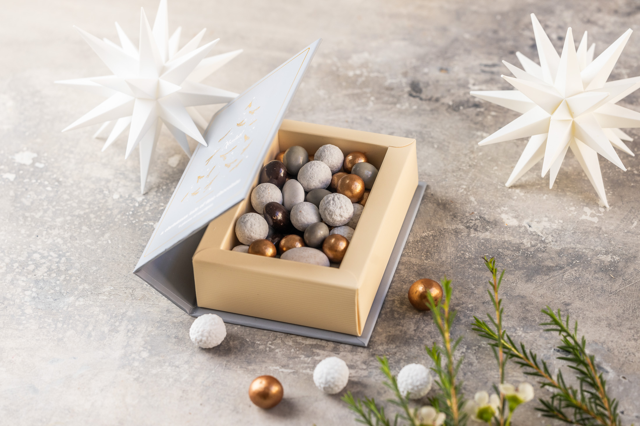 Grey Christmas Book er en charmerende gaveidé formet som en bog – fyldt med søde fristelser fra Xocolatl. Indholdet byder blandt andet på sprøde hasselnødder med mørk chokolade, chokoladelakrids og chokolademandler. En hyggelig og dekorativ gave, der kombinerer lækkerier med et strejf af nostalgi.