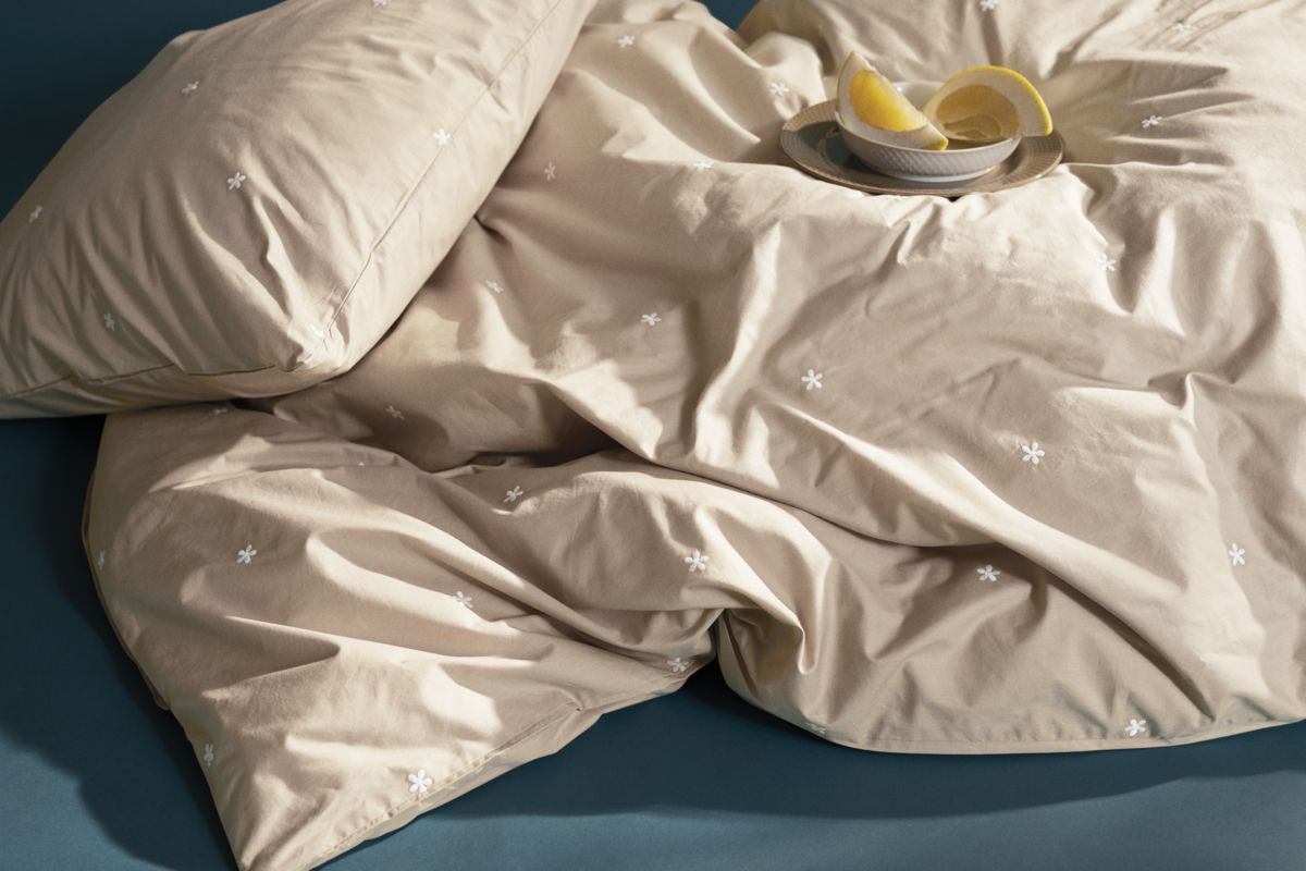 Daisy er fremstillet i 100% økologisk bomuld, der både er GOTS-certificeret og OEKO-TEX®-mærket, så du kan nyde en god nats søvn med god samvittighed. Og når du kommer helt tæt på Daisy-sengetøjet, vil du ud over detaljerne med de mange små margueritter også virkelig kunne se og mærke lækkerheden i den tætte og fine bomuld, der giver stoffet en blød og glat tekstur.