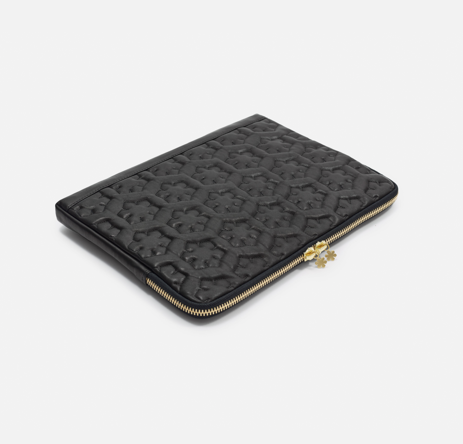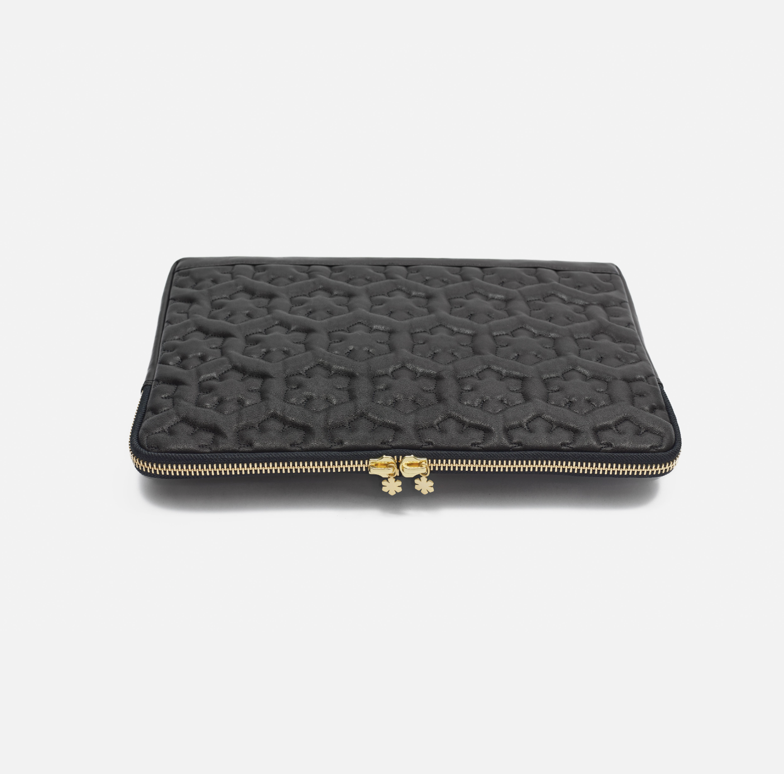Rhanders Isabella Computer Sleeve er inspireret af de smørbløde og delikate Isabella-handsker, der oprindeligt blev designet i 1950’erne. Isabella Computer Sleeve er opdateret med ikke bare en broderet Kalmus-blomst, men er fuldt quiltet og polstret, så det kan beskytte din computer med stil.