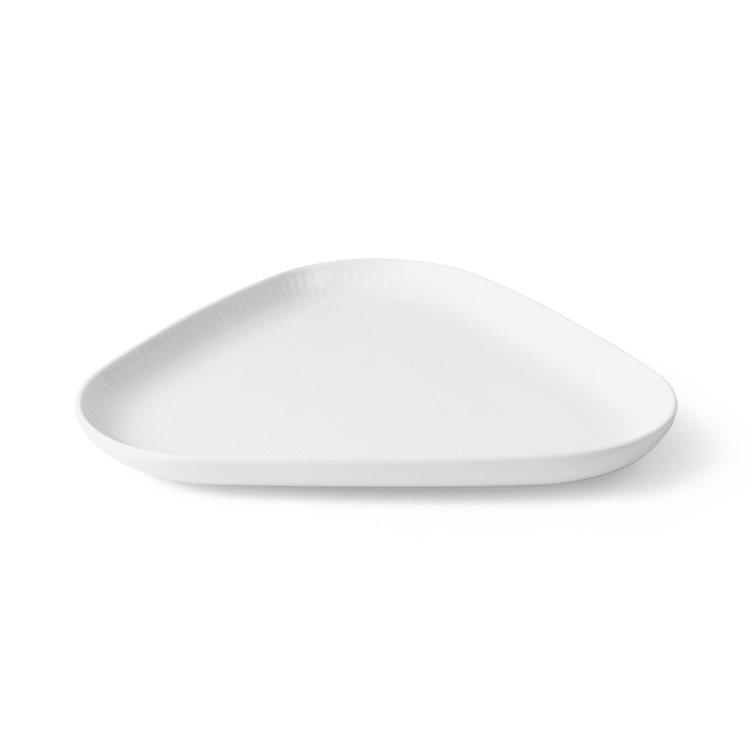 Dette smukke Royal Copenhagen Hvid Riflet fad kombinerer klassisk skandinavisk elegance med et moderne twist. Den hvide, umalede overflade fremhæver de håndlavede rifler, der kendetegner Royal Copenhagen, og giver fadet en unik dybde og struktur. Den let trekantede form tilfører et stilrent og nutidigt udtryk, som gør fadet til et smukt blikfang på bordet.