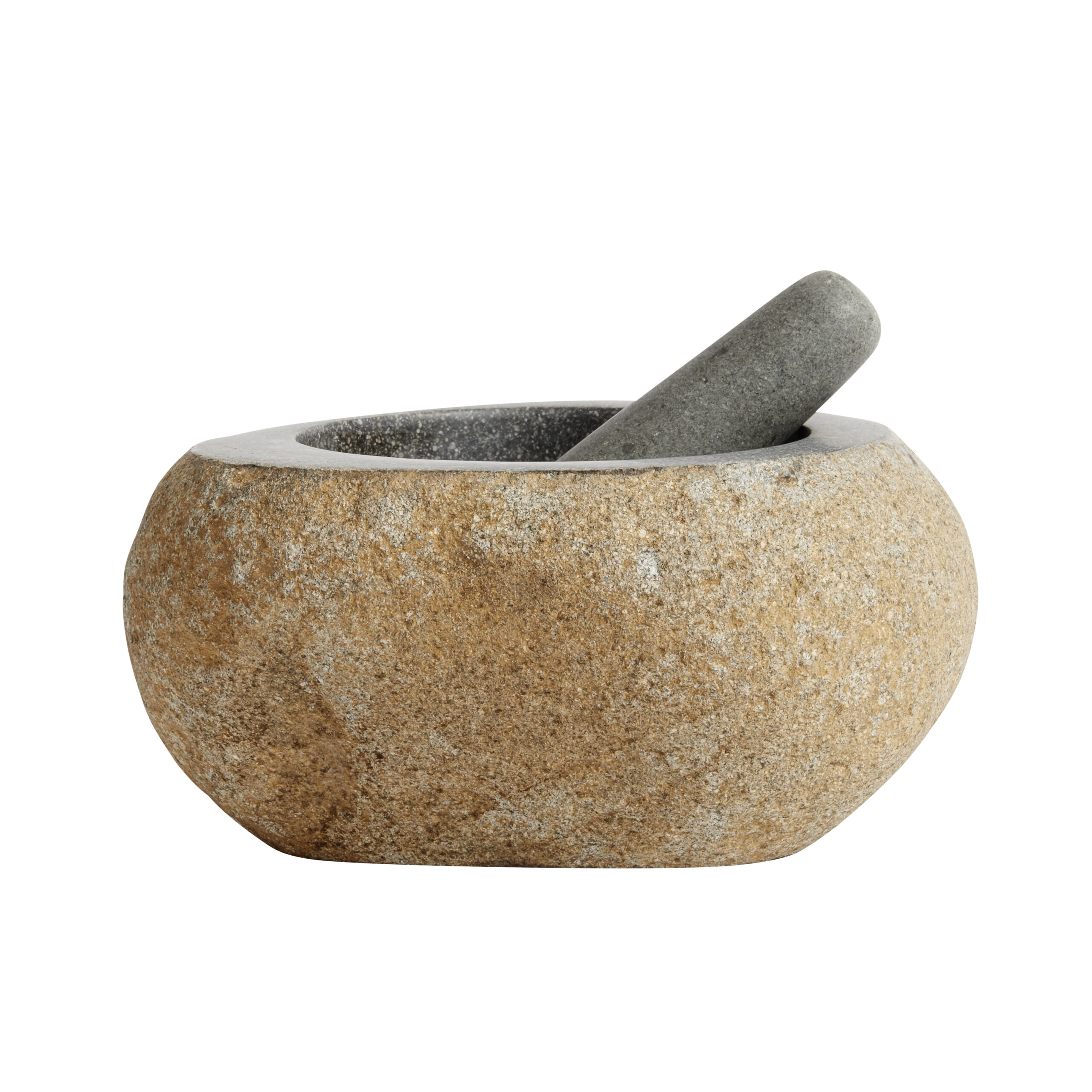 Valley morter fra Muubs er et smukt og funktionelt redskab til køkkenet, håndlavet i riverstone – et robust naturmateriale, der sikrer hver morter sit helt eget unikke udtryk. Med en højde på ca. 11 cm og en diameter på 18 cm er denne morter ideel til både daglig brug og som dekorativt element i dit køkken.