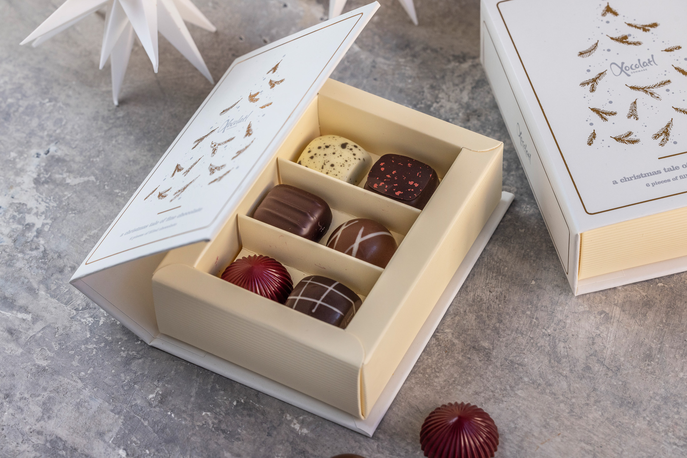 White book chocolate er en hyggelig lille bog fyldt med smag. Denne søde gave fra Xocolatl indeholder 6 fyldte chokolader med lækre og varierede smagsnuancer: marcipan, lakrids, rom, blodappelsin, kahlua og kirsebærmarcipan. En stemningsfuld og dekorativ gaveidé – perfekt til værtinden, kollegaen eller som en lille selvforkælelse.